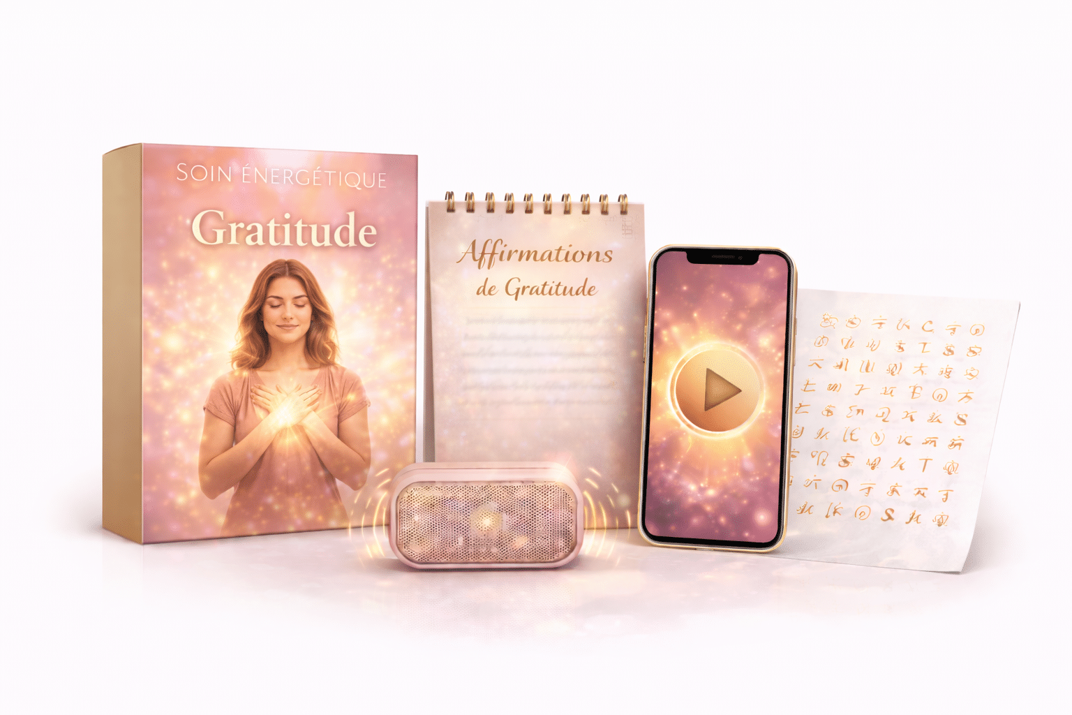 Ces coffrets sont de véritables « accélérateurs vibratoires » : à travers les différents outils rassemblés dans le pack, l’énergie est dirigée vers une intention précise.